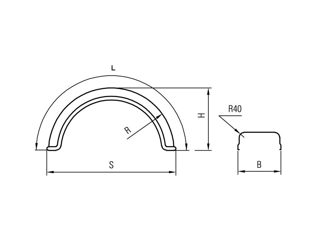 B = 650 mm S = 1280 mm R = 630 mm L = 1900 mm H = 600 mm
