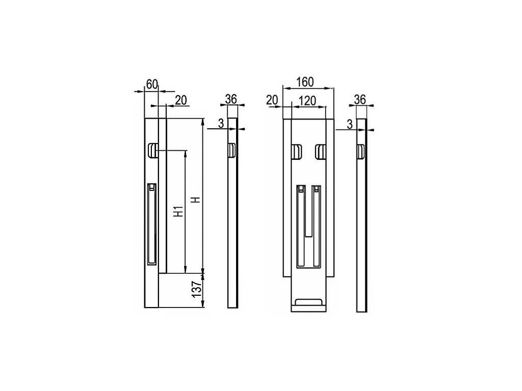 H = 500 mm 60 x 36 mm