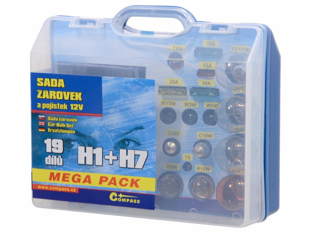 Žárovky 12V servisní box MEGA H1+H7+pojistky